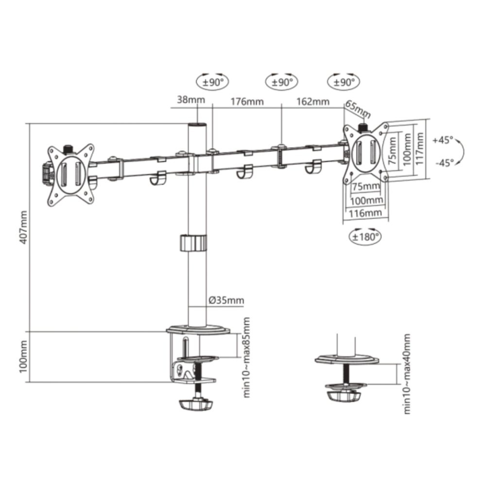 LCD-352/2-2 | Verstelbare Monitor-bureaubeugel | Tot 32" | Max 9kg | VESA 100x100 | 2 Monitoren