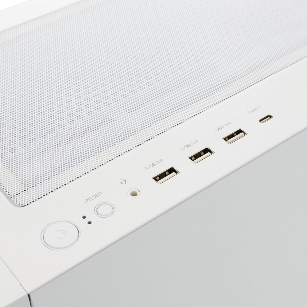 Voor opslag biedt de White Shark WARHEAD ruimte voor twee 3,5-inch en drie 2,5-inch harde schijven of SSD's, evenals zeven horizontale en twee verticale uitbreidingsslots voor extra uitbreidingskaarten. De behuizing is uitgerust met een voorpaneel dat één USB 3.0-poort, twee USB 2.0-poorten en HD Audio-poorten bevat voor gemakkelijke toegang tot randapparatuur.
