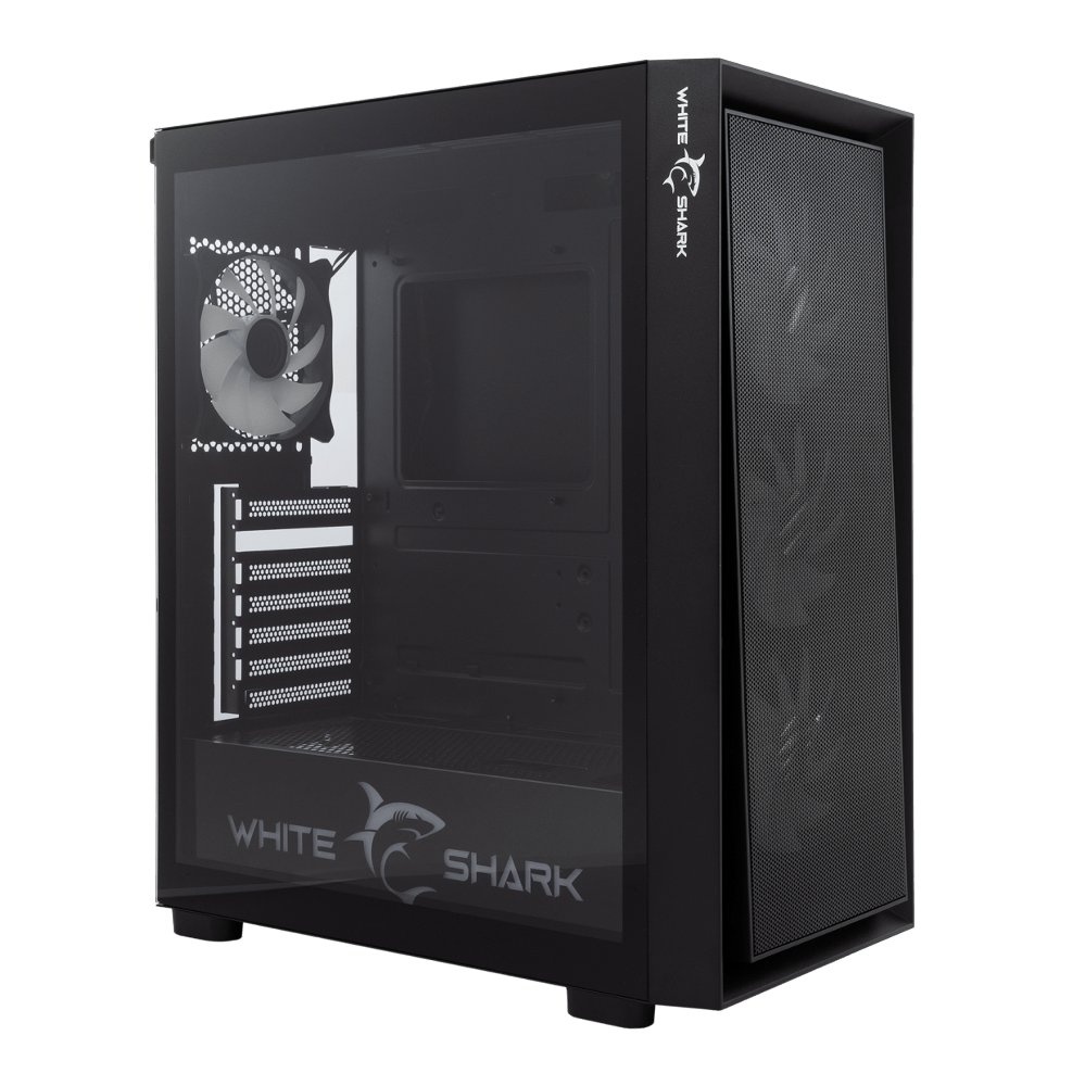 De White Shark WARHEAD is een robuuste en stijlvolle midi tower behuizing, ontworpen voor gamers en pc-bouwers die op zoek zijn naar een betrouwbare en visueel aantrekkelijke behuizing. Met zijn strakke zwarte ontwerp en vier vooraf geïnstalleerde 120 mm RGB-ventilatoren biedt deze behuizing niet alleen uitstekende koeling, maar ook een indrukwekkende visuele presentatie.Deze behuizing ondersteunt verschillende moederbordformaten, waaronder E-ATX, ATX, microATX en ITX, waardoor hij veelzijdig is en geschikt voor diverse systeemconfiguraties. De behuizing biedt plaats aan grafische kaarten met een maximale lengte van 340 mm en CPU-koelers met een maximale hoogte van 160 mm, wat flexibiliteit biedt bij het kiezen van componenten.